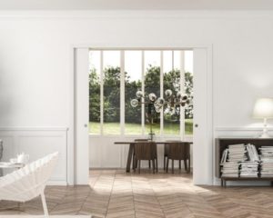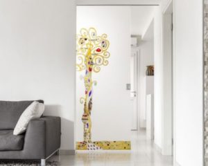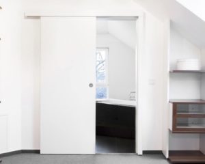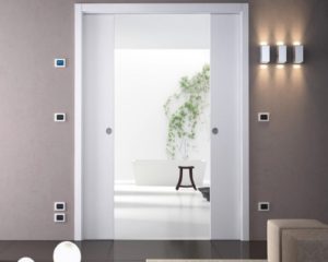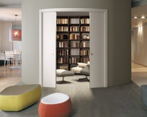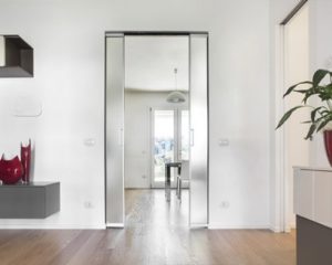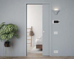 Scorrevoli sì, ma all’esterno. Questo sistema permette ad un pannello porta di scorrere al di fuori della parete, tramite un apposito meccanismo di scorrimento che mantiene la porta sempre a vista ma senza ingombro. Utile quando non si può intervenire su una parete esistente.