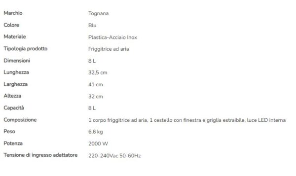 FRIGGITRICE ARIA 8 LT IRIDEA – TOGNANA