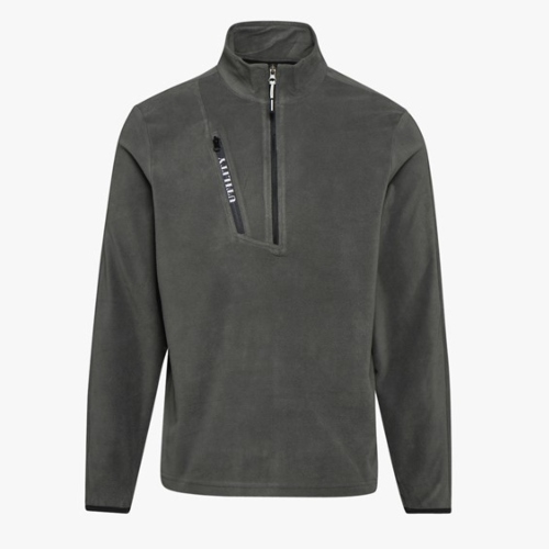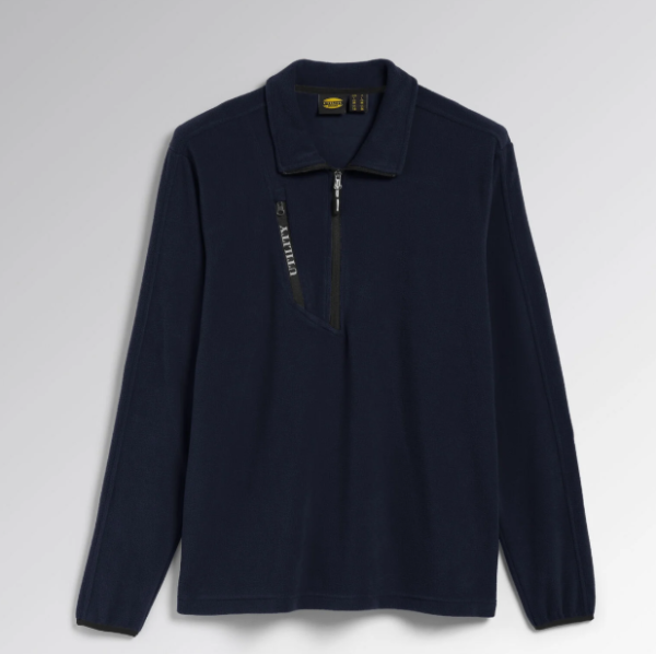 Maglia mezza zip in micro pile con taschino frontale con zip. Fondo e polsini manica elasticizzati con Lycra.