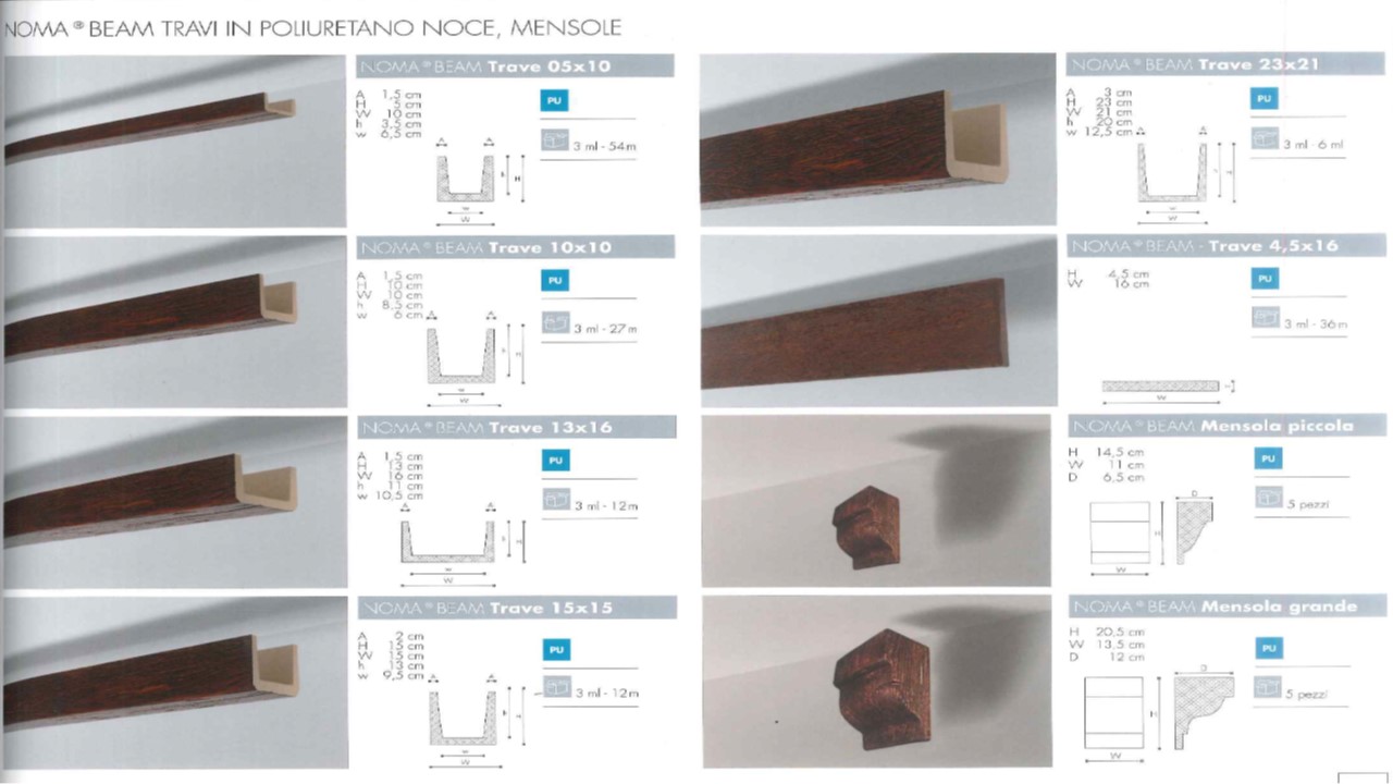 TRAVI E MENSOLE EFFETTO LEGNO NOCE IN POLIURETANO