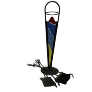 TRESPOLO CAMINO CM 73 IN FERRO BATTUTO CON INSERTI IN VETRO COLORATO